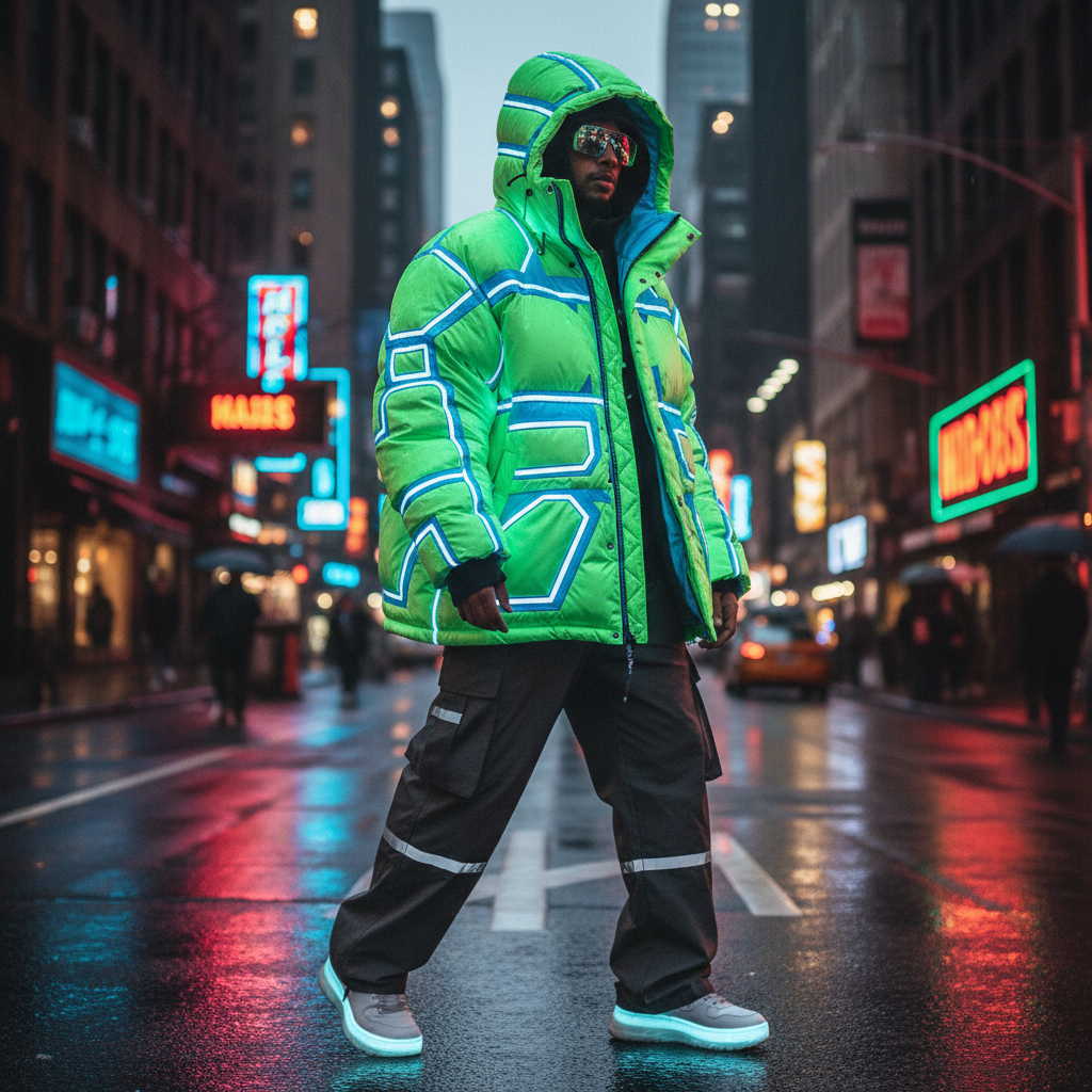 Streetwear loves to remix outerwear. Oversized bomber jackets layered over minis. Utility parkas paired with hoodies and sneakers. Even ski jackets hitting city sidewalks with ironic confidence. Streetwear thrives on flipping “practical” garments into flex pieces, and coats are the ultimate playground for that.